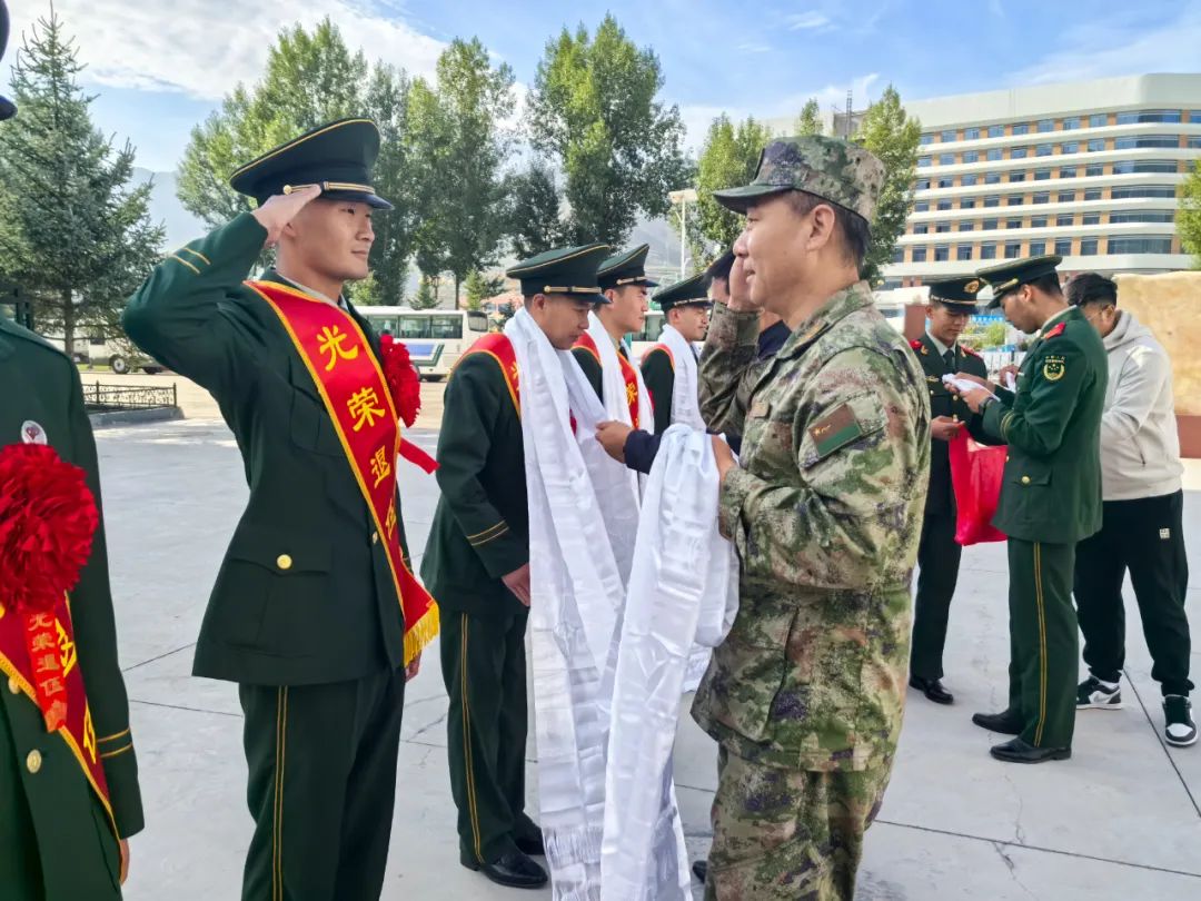 又逢金秋老兵退伍时,又是军营一年离别情。8月30日,县委副书记道吉才让,县委常委、县人武部部长郭团,县委常委、政法委书记旦正加,县政府副县长、公安局局长闹在赴武警二大队军营,为2024年秋季即将退役的士兵举行了慰问欢送仪式,向退役士兵敬献哈达和送去了慰问品,并合影留念。