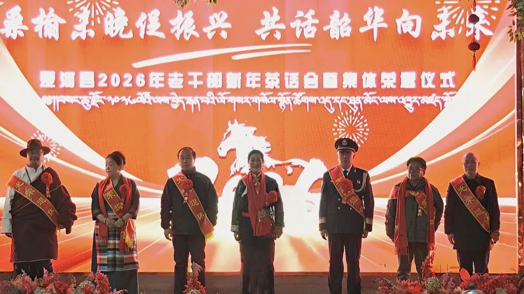 座谈会结束后,县四大班子主要领导和退休老干部一同参加了2026年夏河县老干部新年茶话会暨集体荣退仪式。王宏林在致辞中,向全县所有离退休老干部老同志致以新年的诚挚问候与美好祝福。他指出,夏河发展取得的每一份成绩、实现的每一个进步,都凝聚着各位老同志的智慧心血和鼎力支持,期盼各位老同志继续发挥政治优势、经验优势和威望优势,一如既往地关心支持县委、县政府的工作,为全县改革发展多提宝贵意见、多献睿智之策、多聚团结之力,为绘就更加壮丽的夏河高质量发展画卷贡献“银发力量”。