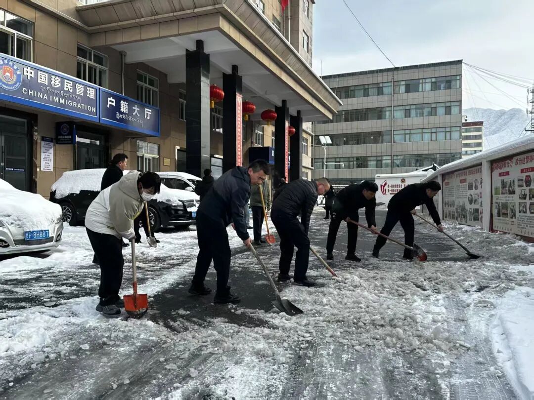 风雪无情人有情,众志成城保平安。从凌晨到白天,全县各级干部职工、志愿者、广大群众不畏严寒、不惧辛劳,以高度的责任感坚守在扫雪除冰第一线,用汗水融化冰雪,用坚守筑牢防线,以实际行动守护群众平安出行,温暖了整个高原初春。