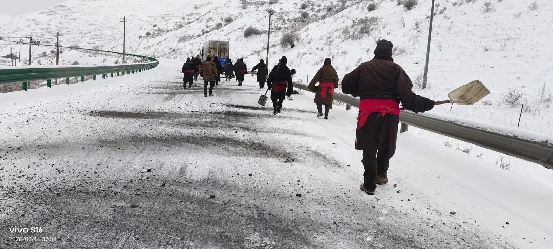 在夏河县阿木去乎镇尼玛龙村,有一种坚守早已融入日常、化为自觉。多年来,当地群众自发组织的30余人志愿队伍,始终秉持守望相助的淳朴初心,每逢降雪天气,都会带上除雪工具义务清扫村内及周边道路积雪,常年坚守在除冰保畅一线,用日复一日的默默付出,守护着乡亲们的出行安全,成为高原大地上一道暖心的风景线。这份代代相传的责任与担当,在此次突发春雪保畅行动中,更是凝聚成了全县上下众志成城的强大力量。