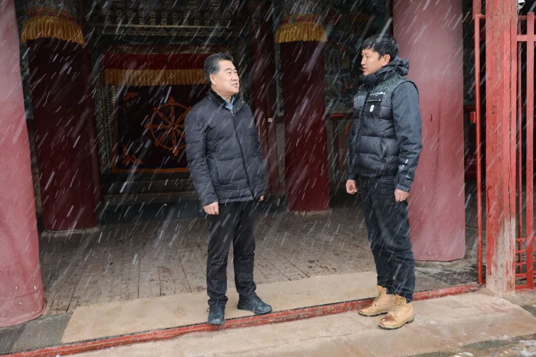在加茂贡寺、博拉寺,何谋保与寺庙办干部、寺管会成员深入交谈,详细了解寺庙管理工作,他强调,要全面贯彻落实党的宗教工作基本方针,巩固拓展“感恩共产党、奋进新时代”和“国家意识、公民意识、法治意识”学习教育成果,扎实开展宗教界“学法规、守戒律、重修为、树形象”教育活动,教育引导僧俗群众坚定拥护党的领导,自觉维护民族团结和社会稳定。要持续强化寺庙办干部队伍建设,充分发挥职能作用,依法依规加强寺庙管理,认真落实寺庙办、寺管会联席会议制度,严格执行僧人外出请销假、员额管理、寺庙财税监管等制度,推动全面从严治教走深走实。要用心用情开展联寺包僧全覆盖行动,及时深入了解僧人的所思所想、行为动态、家庭状况、社会关系,积极帮助解决学习修行和生活中的困难问题,让广大僧人切实感受到党和政府的温暖。