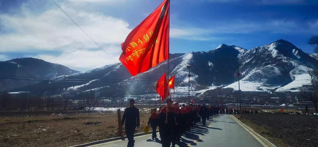 本次活动往返徒步近11公里,夏河县交管大队全程警车开路、沿途护航,全力保障师生出行安全。前往陵园途中,全体师生队列整齐、纪律严明,同学们主动捡拾沿路垃圾,以实际行动践行文明、爱护环境,充分展现了拉卜楞小学少先队员守秩序、懂礼貌、勇担当的良好精神风貌。
