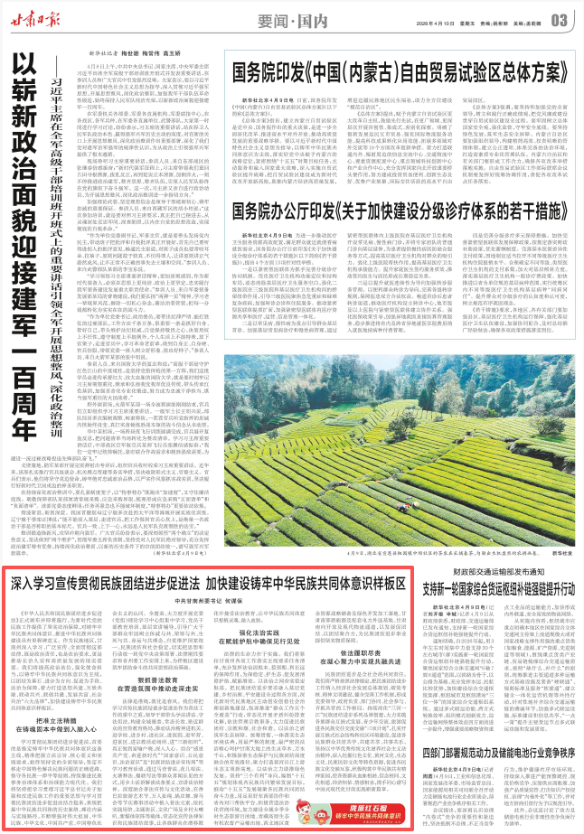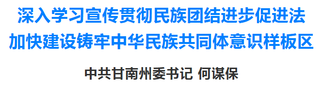 《中华人民共和国民族团结进步促进法》正式颁布并即将施行,为新时代党的民族工作提供了坚实法治保障,对铸牢中华民族共同体意识、推进中华民族共同体建设具有里程碑意义。作为民族地区,甘南州深入学习、广泛宣传、全面贯彻这部法律,既是政治责任,也是法治要求,更是推动长治久安和高质量发展的现实需要。我们将提高政治站位,强化使命担当,以铸牢中华民族共同体意识为主线,以团结为基石、进步为方向、促进为手段、法治为保障,着力打造思想共通、互嵌共融、联动共兴、联创共建、发展共富、社会共治“六大品牌”,加快建设铸牢中华民族共同体意识样板区。