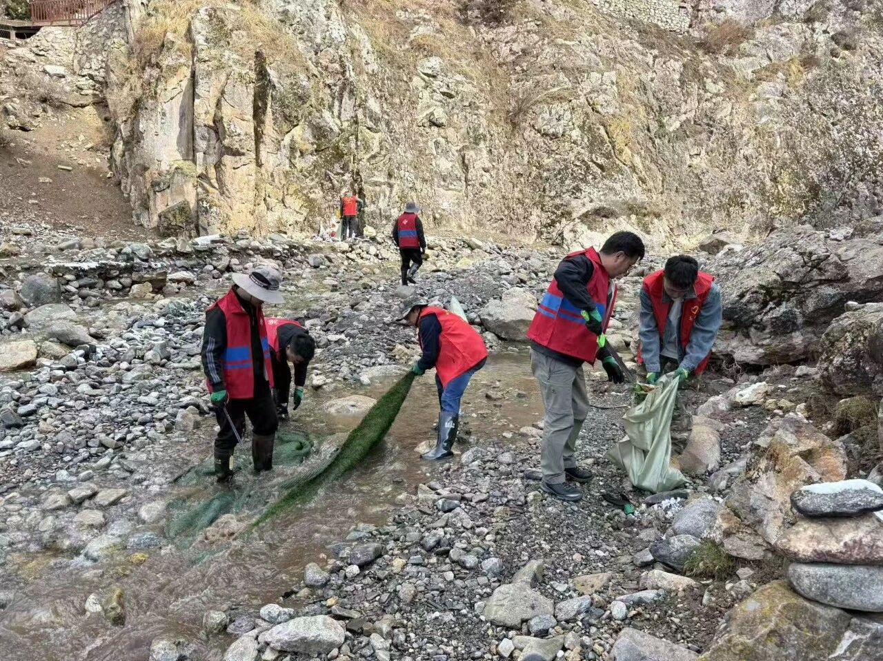 夏河县依托河湖长制工作体系,纵深推进大夏河等县域内河道“清四乱”专项行动,抓实河道全域生态管护与环境整治工作。工作人员沿着河道岸线徒步巡查,重点排查整治乱占、乱采、乱堆、乱建等突出问题,协同配合清理河道淤泥、漂浮杂物、沿岸垃圾杂草,疏通沟渠排水梗阻,修复加固生态护岸。健全“河湖长+检察长”协作机制,强化日常巡河监管、水质动态监测与周边污染源排查管控,同步加大生态环保宣传力度,引导沿岸群众树立护河爱河意识,自觉守护河道生态环境。夏河县水务局党组书记、局长普华加介绍:“我们每日分段巡河、定期清杂除草,紧盯岸边违建、水面漂浮物,既要治标清理当下问题,更要长期管护守住碧水,让大夏河一直水清岸绿、滋养家园。”