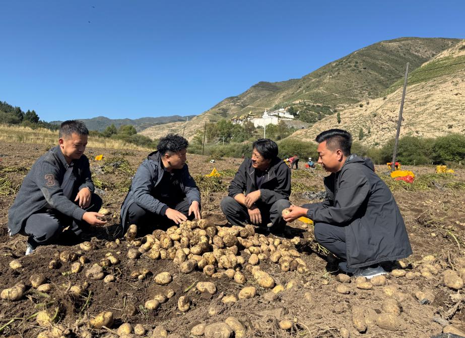 记者看到,金黄的马铃薯还未完成采收,就已经有慕名而来的游客直接来到田埂间询问购买事项。唐尕昂乡的马铃薯之所以畅销,秘诀就在当地的沙土地里,沙土透气耐涝的特性恰好契合马铃薯生长需求。加上平均2800米的海拔,为马铃薯的成长提供了天然的“生长助力”,独特的气候条件和优良的土质更让这里的马铃薯口感绵密,淀粉含量极高。