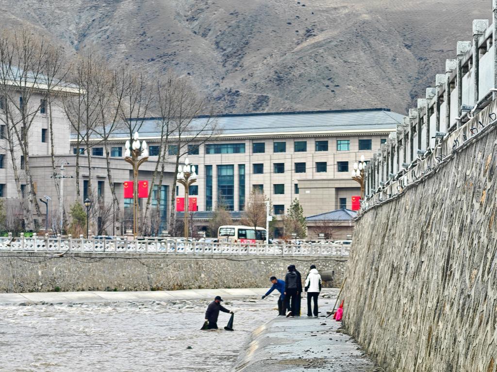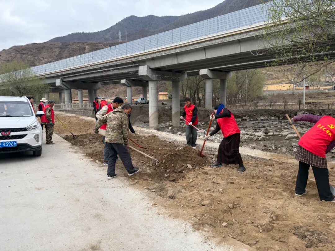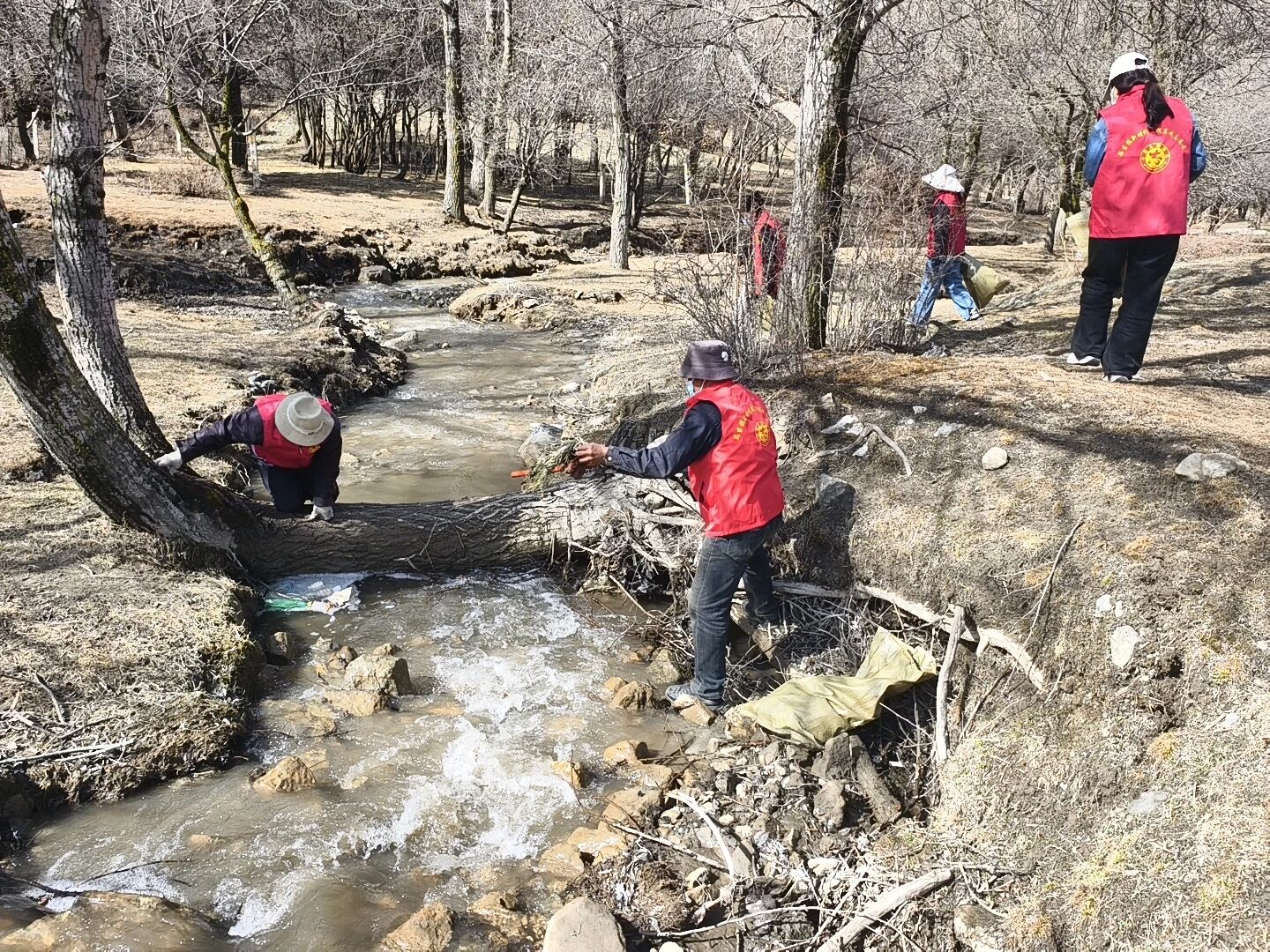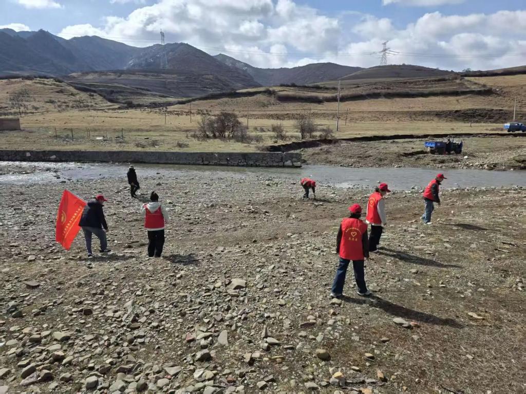 扎油乡组织志愿者开展环境卫生整治与河道“清四乱”行动,对河道、河岸隐蔽区域垃圾、残枝进行清理,守护河道整洁。