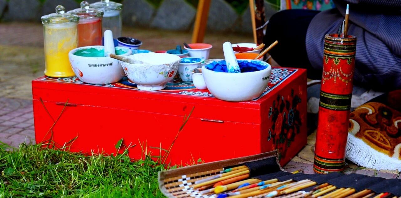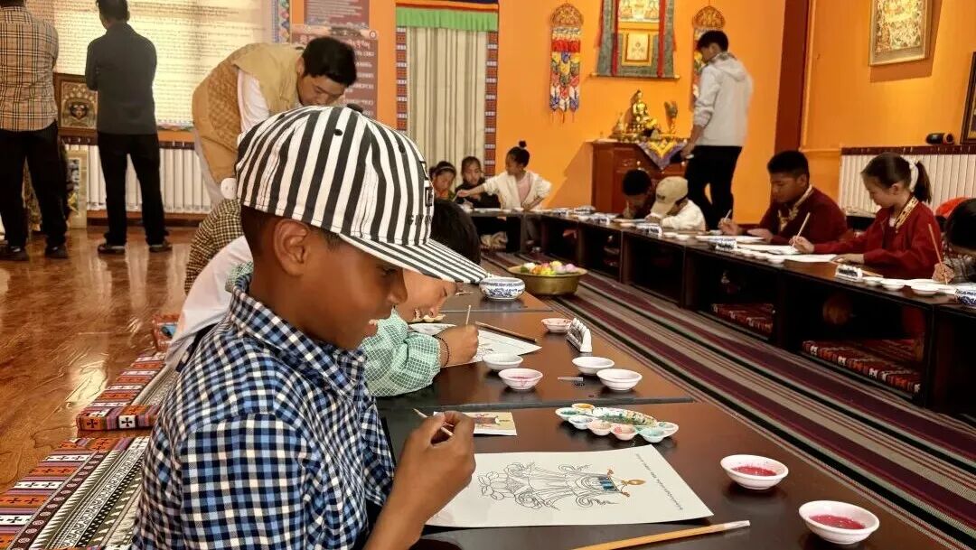 在交巴加布四十余载的丹青守艺中,我们看到了非遗传承的生动缩影。他将敦煌艺术与藏地传统融于一体,改良矿物颜料调制古法,创作的《文殊菩萨三尊佛》获成都国际非遗节一等奖,《药师佛极乐世界》摘得浙江非遗博览会金奖,《和睦四瑞》等500余幅作品中,9幅被国家博物馆及省级机构收藏。他更以创新赋予传统生命力,《和谐中国》以五十六朵花象征民族,石榴果实寓意团结,成为“民族团结一家亲”的生动载体。他创办菩提画苑,首创“党员带徒”机制,培养画师200余人,并主导成立甘南州首个唐卡协会,建立纹样数据库,带动产业年产值突破8000万元,让唐卡成为群众增收的重要依托。在夏河县文旅部门的推动下,交巴加布更积极探索“非遗+旅游”“非遗+公益”模式,开发文创产品30余类,推动唐卡走进景区、走向全国,成为文化交流的亮丽名片。