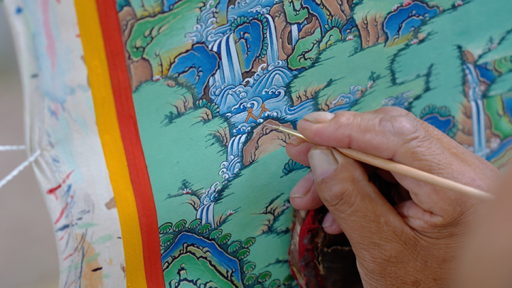 如今,唐卡的使用场景不再限于单一场景,已成为人们传递情感的物件。画师们不断探索描绘对生活、民族、社会有影响的题材,诸如保护环境的生态理念,并更加贴近现代社会的审美需求。