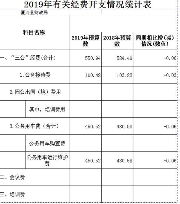 2019年夏河县三公经费预算表
