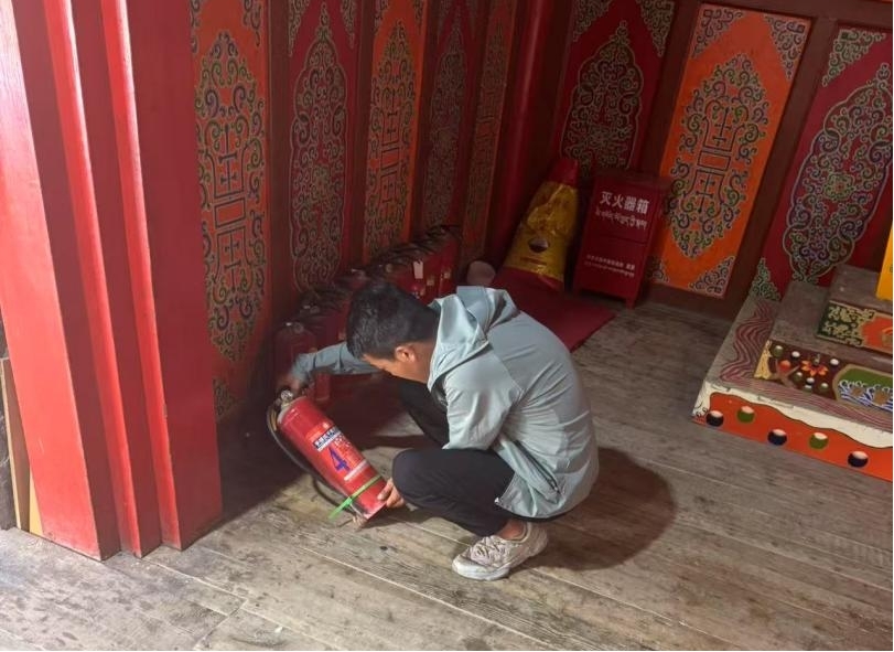8月1日,唐尕昂乡组织寺庙办工作人员在各寺院宗教活动场所和僧舍中,围绕用火安全、用电安全、消防安全、房屋安全、汛期防范等进行了全方位无死角的排查。紧盯容易导致消防安全事故的寺庙茶房、经堂、僧舍等的消防器材、消防通道堵塞、私搭乱接电线、酥油灯、焚香等问题进行详细检查,并指导僧人自觉养成良好用电用火习惯,切实筑牢寺庙安全屏障。