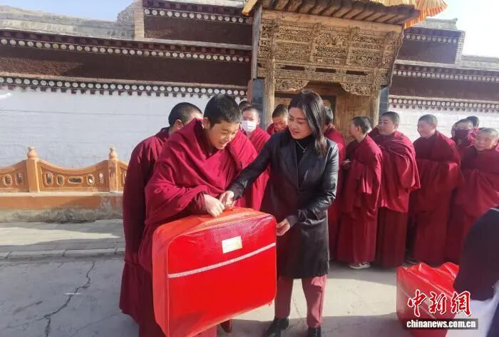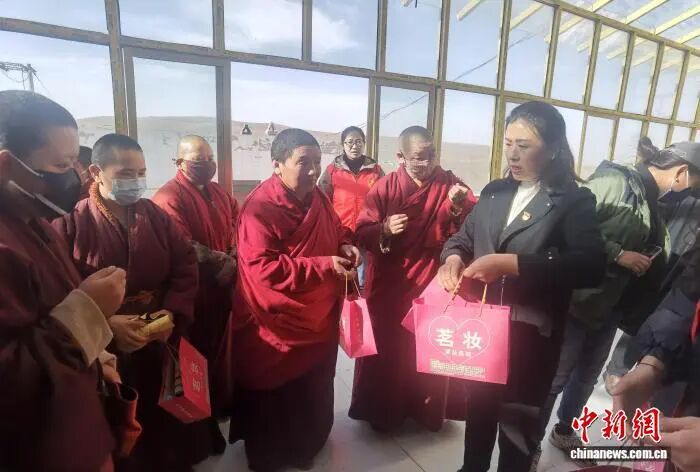 中新网兰州1月24日电 “我们希望让她们也不要忘记自己是个女性。”甘肃省甘南藏族自治州合作市妇联主席马晓虹说道。每年“三八”国际妇女节,合作市曲宗红教尼姑寺的70多位僧尼,都会收到一份特别的礼物——系着丝带的礼品盒里,装着护手霜、润肤露等化妆品。这份来自合作市妇联的关怀,细腻而温暖,触动着这群长期远离世俗生活的特殊女性群体。