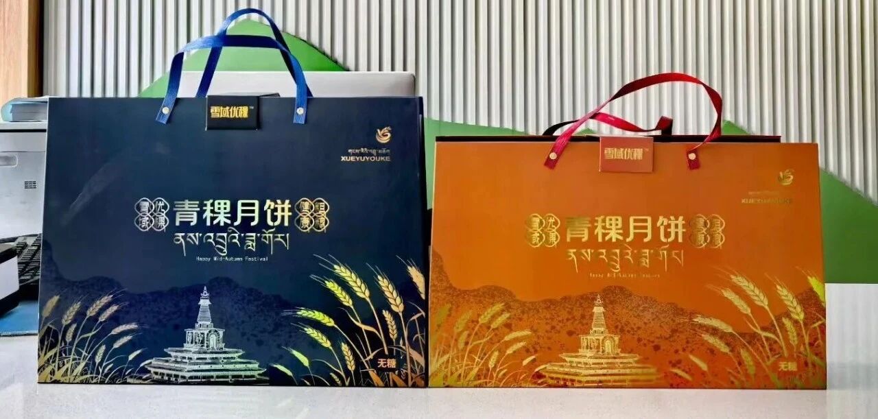 为拓展青稞产品的市场空间,雪域优稞团队注重产品研发与品牌打造。他们推出的青稞酥月饼礼盒,包装以橙、蓝为主色调,巧妙点缀青稞与高原文化元素,兼具民族特色与现代审美;青稞奶茶口感醇厚,让消费者品味到高原的独特风味。通过持续创新,青稞产品的认知度和影响力不断提升。
